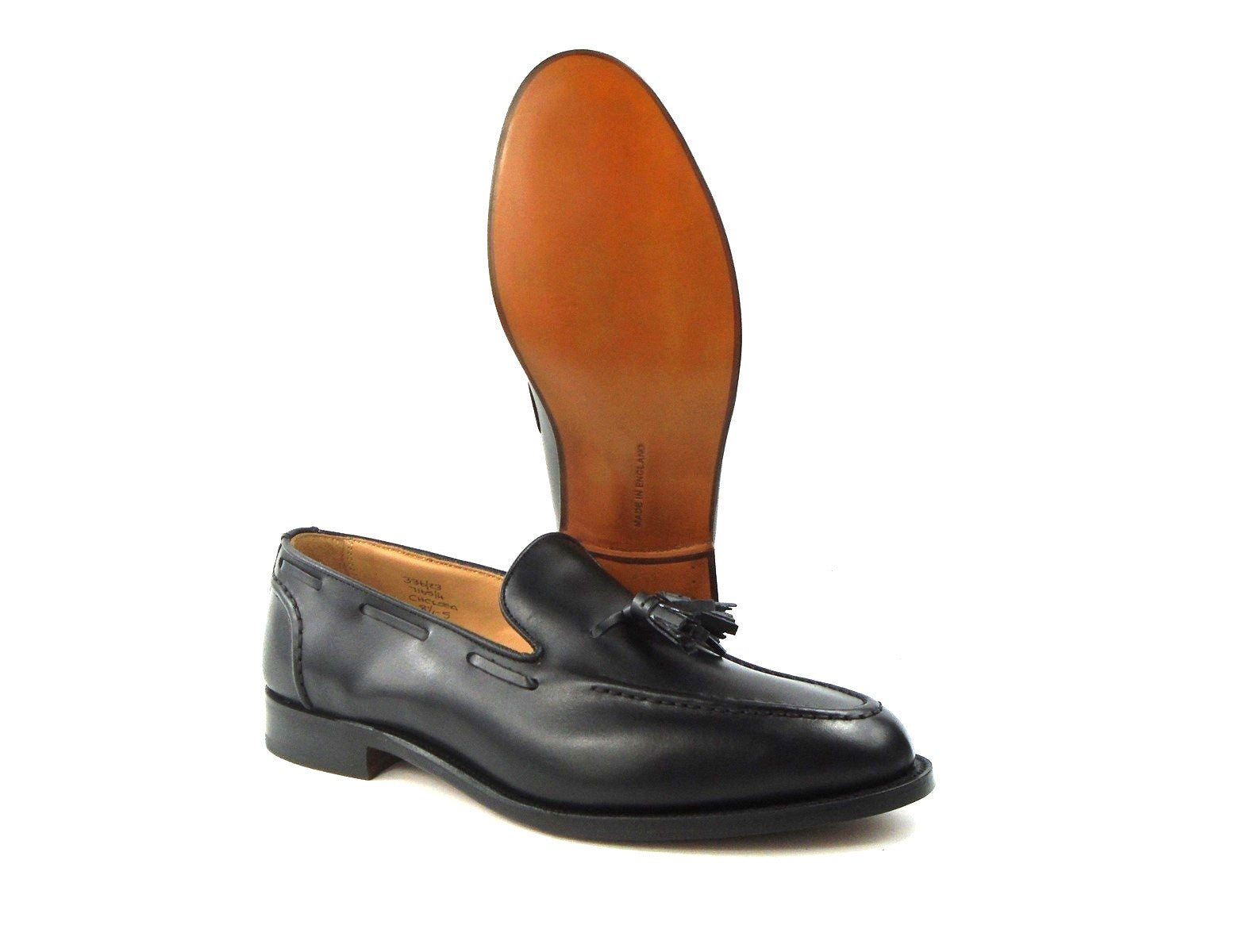 Men's Black Box Calf Tassel Loafer finished on a Leather sole. Made on the true to size 11659 last.