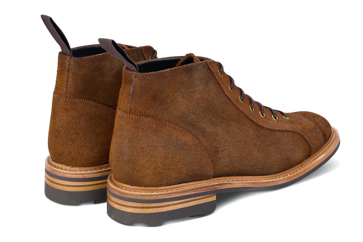 The Ethan Monkey Boot features seven eyelets, and a half-bellows tongue, this Ethan Monkey Boot utilises C.F Stead waxy suede is a traditional heavy weight “Hunting Suede” or reverse suede. We stitched the hard-wearing rubber Ridgeway Sole into a Goodyear Barbour Welt. Made on the 5402R Last - This fits true to size.