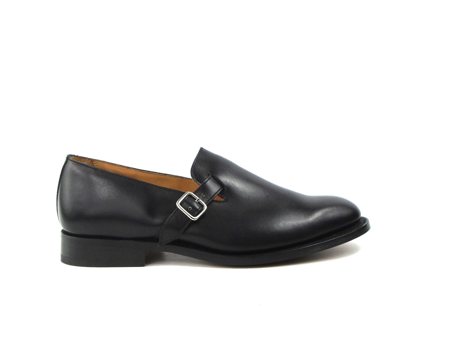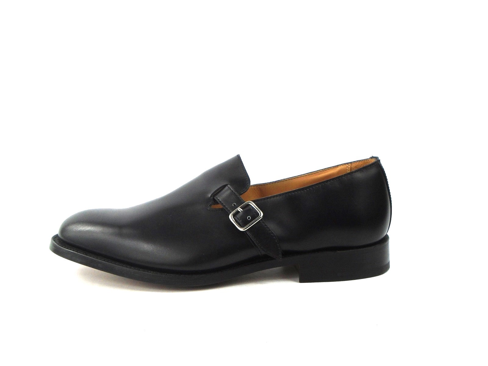 Men's Black Calf Buckle Loafer & finished on a Leather sole. Made on the true to size 6038 last.