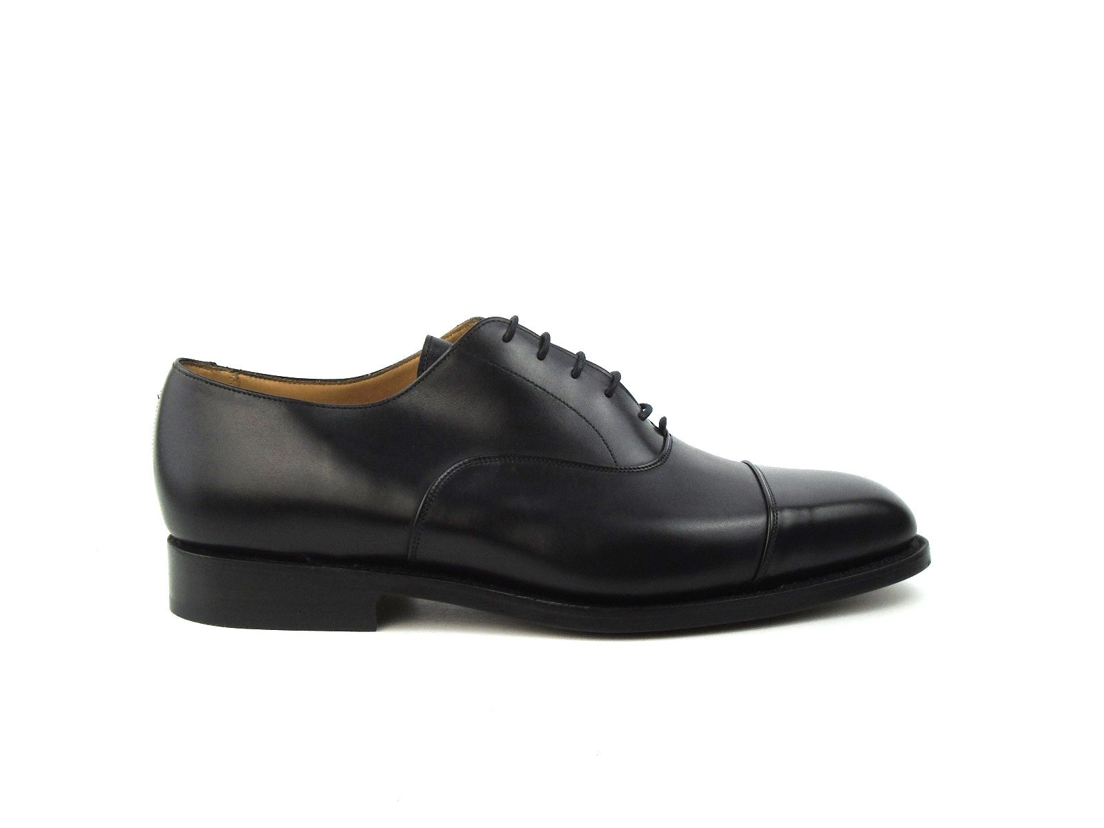 Men's Black Box Calf Toe Cap Oxford City Shoe, finished on a Leather sole. Made on the true to size 4537 last.